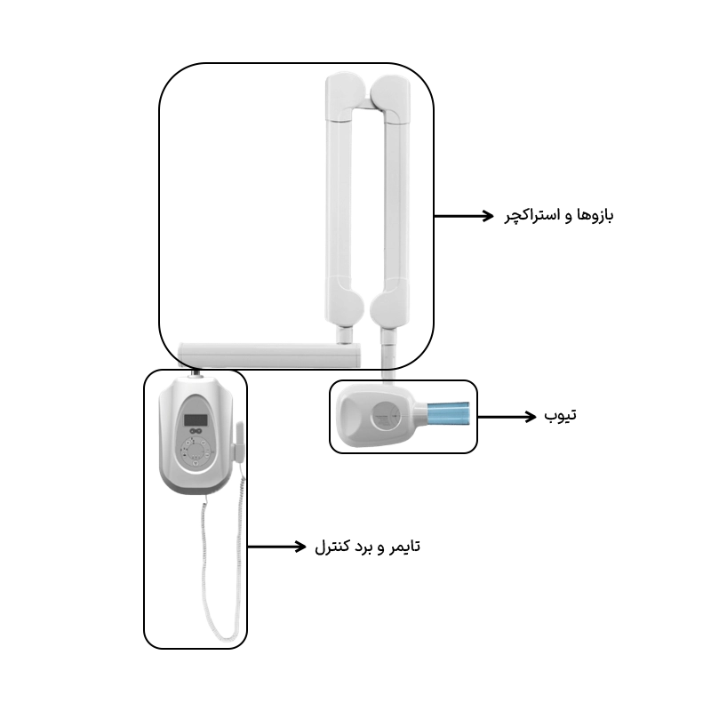 یک دستگاه رادیوگرافی دندانی از بخشهای اصلی زیر تشکیل میشود: